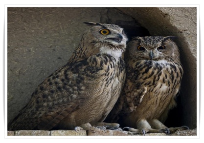 The mottled wood owl (Strix ocellata) is a species of large owl found in India. They are found in gardens and thin deciduous forests adjacent to dry thorn forests or farmland. They are easily detected by their distinctive tremulous eerie calls at dawn and dusk. The characteristic call is a duet of the male and female while other notes include a low hoot and a screech. Their large size, lack of "ear" tufts and the concentric barring on the face make them easy to identify - Size: 41-48 cm, Wingspan: 31-37 cm